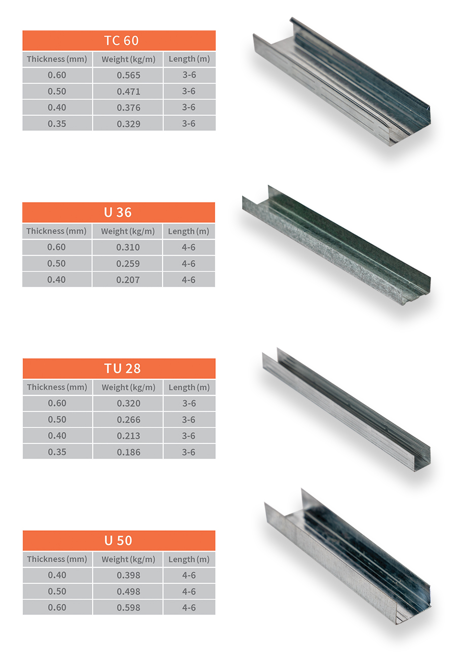 شرکت ما با طراحی پروفیل سازه های فلزی ساختار خشک بر اساس استانداردهای روز دنیا و متناسب نیاز مجریان محترم سیستم های کناف و PVC، این پروفیل ها را با کیفیت بسیار بالا و دقت مناسب، تولید و به بازار عرضه نموده است.